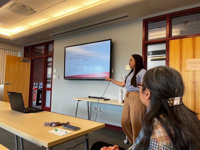 Durante su estancia, la profesora Andrea Lazarte participó activamente como guest speaker en la clase Global Leadership & Cultural Intelligence, dictada por la profesora Yan Shen. Asimismo, presentó la ponencia “Sustainable entrepreneurship: Pathways from my doctoral thesis until today” en el espacio académico What’s Research Wednesday, dirigido a estudiantes doctorales y miembros del cuerpo docente.