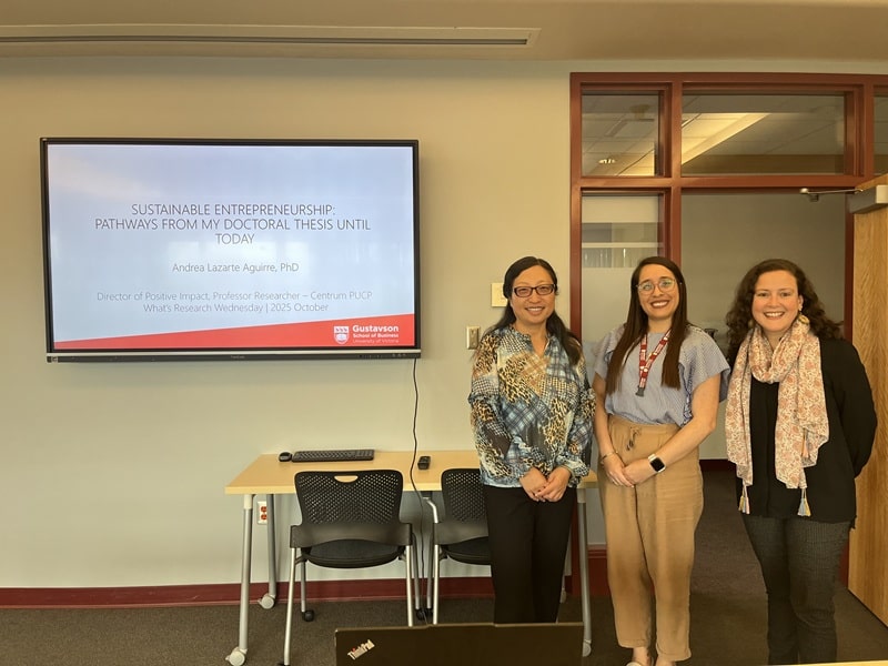Como parte de la colaboración entre Centrum PUCP y la Peter Gustavson School of Business de la University of Victoria (Canadá), la profesora Andrea Lazarte realiza una estancia académica como profesora visitante, representando a la Escuela de Negocios en espacios de docencia, investigación y cooperación internacional.