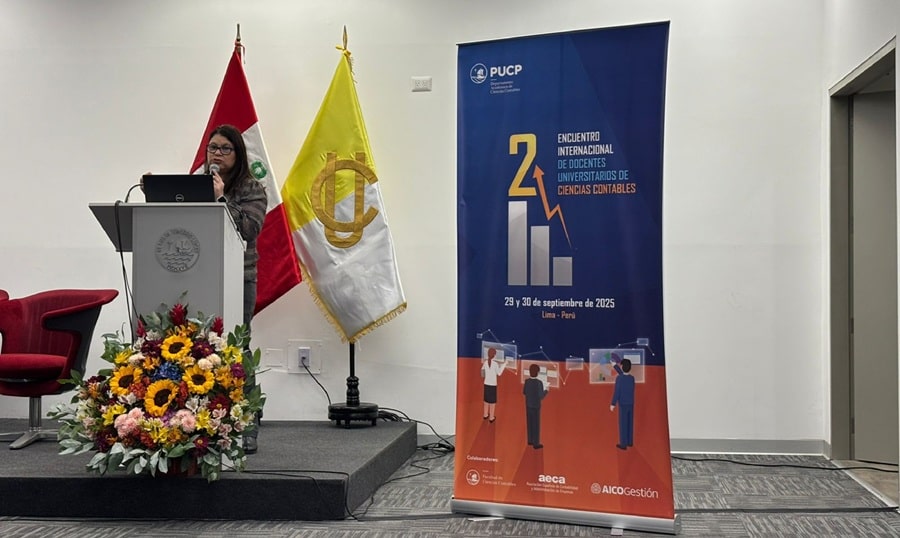 Asimismo, participó como expositora invitada en el II Encuentro Internacional de Docentes Universitarios en Contabilidad – PUCP, con la conferencia “Docencia universitaria en tiempos de cambio: claves para innovar en la era digital”. En esta sesión, destacó los retos del nuevo rol docente y dictó un taller práctico sobre el uso de herramientas de inteligencia artificial en la educación universitaria.
