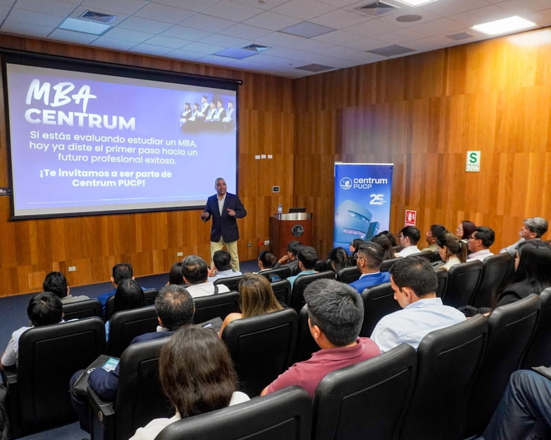 El evento fue liderado por el Dr. Sandro Sánchez, director del MBA Centrum, quien abordó el liderazgo y la toma de decisiones en entornos de alta exigencia, así como el rol del MBA como punto de quiebre en la trayectoria profesional. Durante la jornada, los asistentes conocieron las distintas modalidades del MBA Centrum, su malla curricular, certificaciones y alianzas internacionales, entendiendo cómo la formación ejecutiva puede proyectar su perfil hacia estándares globales.