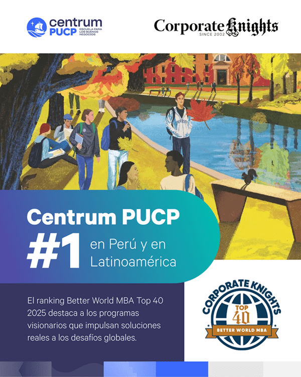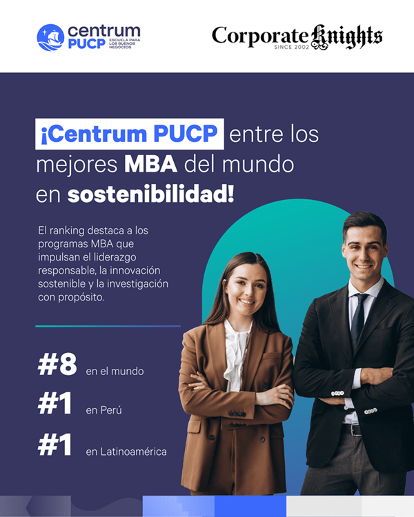 Centrum PUCP, escuela de negocios de la Pontificia Universidad Católica del Perú, reafirma así su liderazgo internacional en sostenibilidad al mantenerse entre los 10 mejores MBA del mundo en el Better World MBA Ranking 2025. Este ranking es elaborado por la reconocida organización canadiense Corporate Knights, especializada en la medición del desempeño sostenible y de la responsabilidad corporativa.