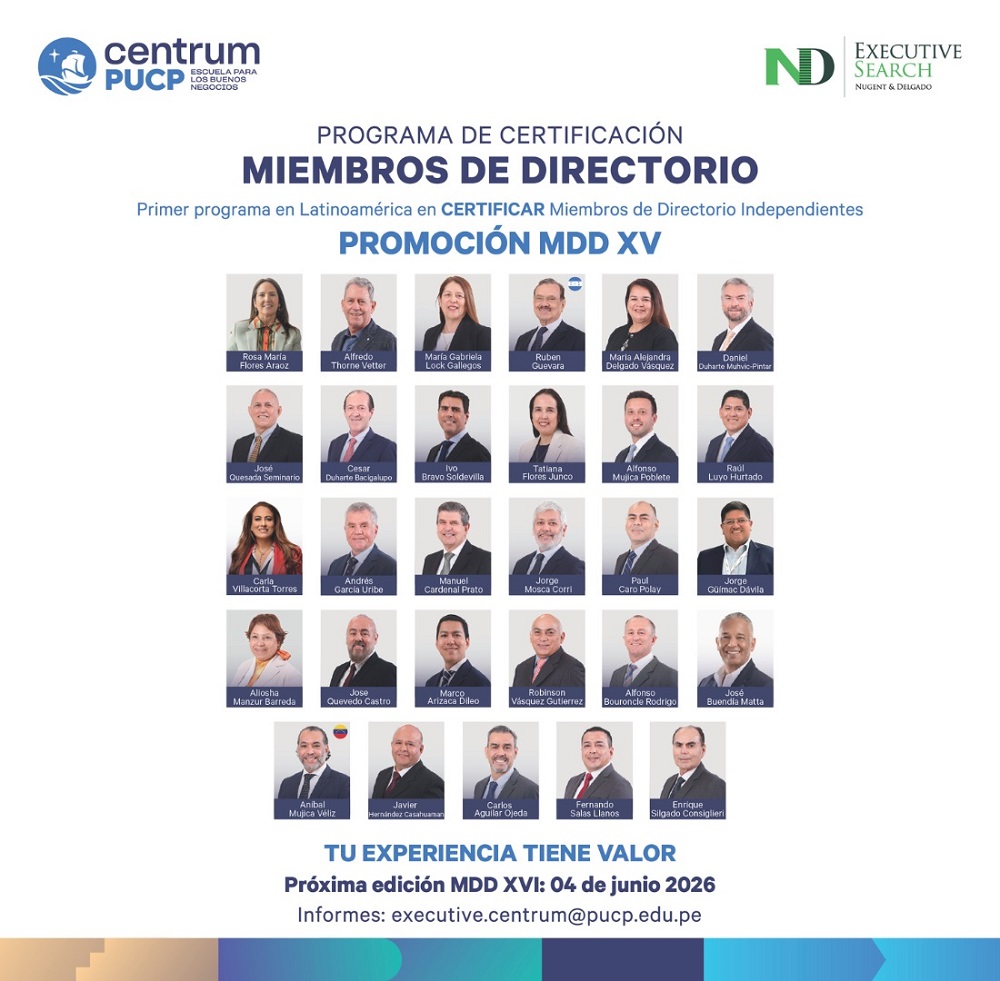 Conoce el Programa de Certificación para Miembros de Directorio MDD de Centrum PUCP: https://centrum.pucp.edu.pe/programas/educacion-ejecutiva/alta-direccion/miembros-directorio/