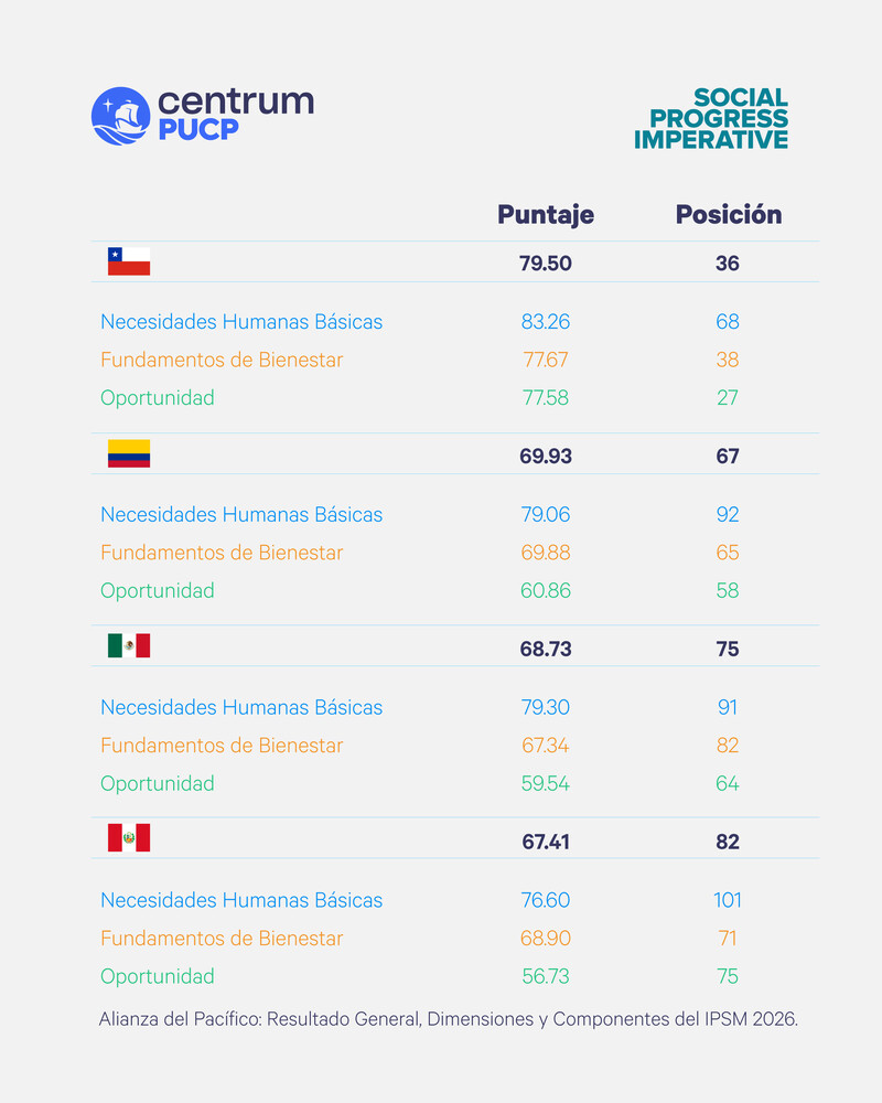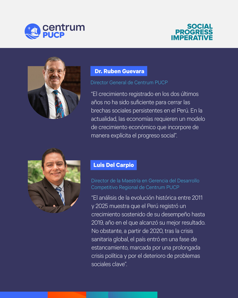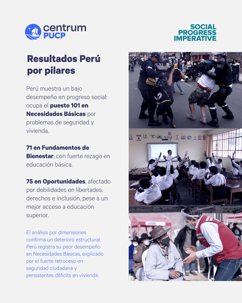 “El retroceso registrado en el progreso social del país durante los últimos ocho años, en comparación con los otros 171 países incluidos en el índice, ha ampliado las brechas sociales entre el Perú y diversos países de América Latina y del resto del mundo. En otras palabras, los factores antes señalados le están pasando la factura al país en términos relativos en los años recientes.