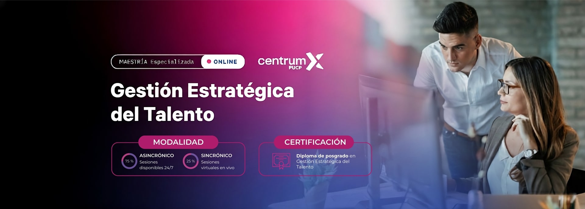 Este curso es de carácter teórico con metodologías prácticas. El presente curso tiene como propósito que el estudiante aprenda los conceptos necesarios para aplicar técnicas analíticas y tomar decisiones estratégicas basadas en datos en el ámbito de recursos humanos, también identificará patrones para predecir tendencias y maximizar el rendimiento de equipos mediante el análisis de datos en la gestión del talento. Los contenidos que se tratan en el curso son: aplicación de analítica de negocios para obtener una visión más profunda del rendimiento del personal, identificación de áreas de mejora y diseño de estrategias efectivas de reclutamiento, retención y desarrollo del talento.